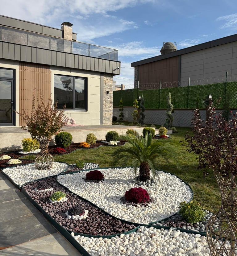 Modern ve doğal tonlarla harmanlanmış peyzaj tasarımlarımız, yaşam alanlarınızı yeşilin huzuruyla buluşturuyor.